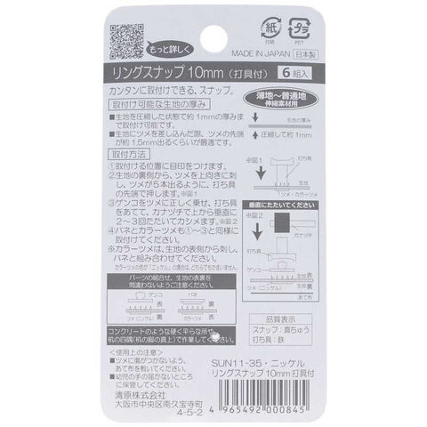 清原 サンコッコー リングスナップ 打具付き ニッケル [SUN1135] SUN11-35