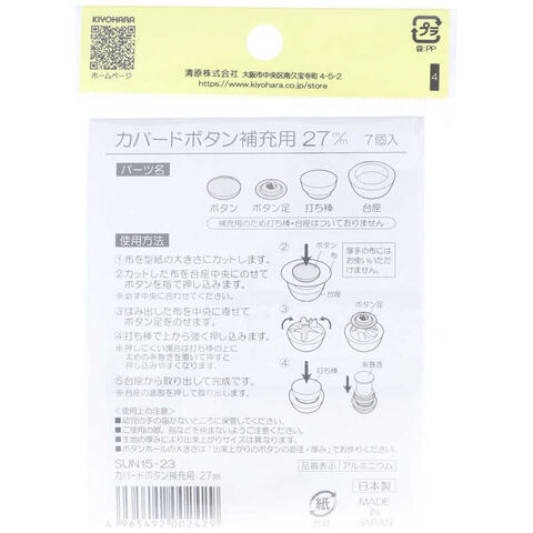 清原 サンコッコー カバドボタン補充用 27mm [SUN1523] SUN15-23