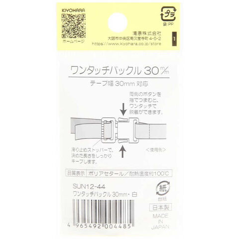 清原 プラスチックバックル 30mm 白 [SUN1244] SUN12-44