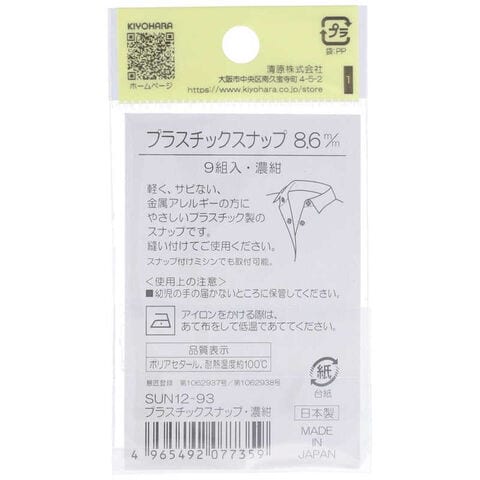 清原 プラスチックスナップ 8.6mm 濃紺 [SUN1293] SUN12-93