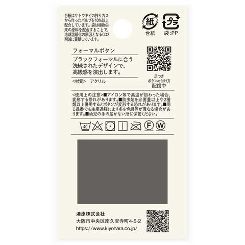 清原 ナウナウボタン フォーマルボタン プレーン 裏穴 黒 18mm NWN4121