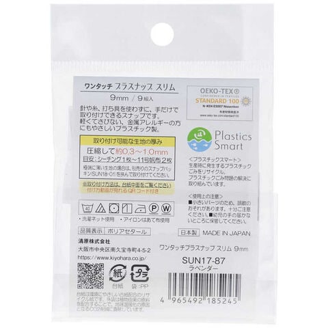 清原 ワンタッチプラスナップスリム9mm ラベンダー [SUN1787] SUN17-87