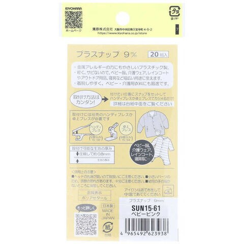 清原 プラスナップ 9mm ベビーピンク [SUN1561] SUN15-61
