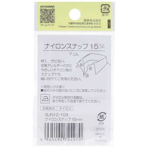 清原 ナイロンスナップ 15mm [SUN12103] SUN12-103