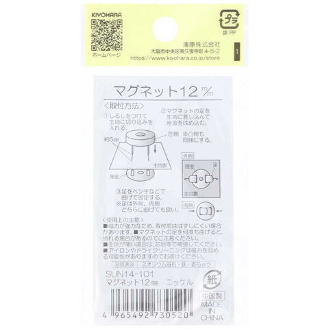 清原 マグネット 12mm ニッケル [SUN14101] SUN14-101