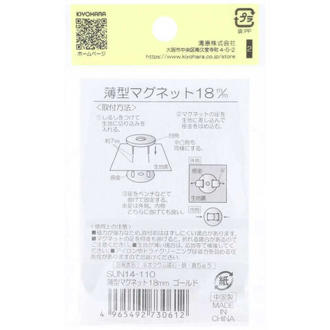 清原 サンコッコー 薄型マグネット 18mm ゴールド [SUN14110] SUN14-110