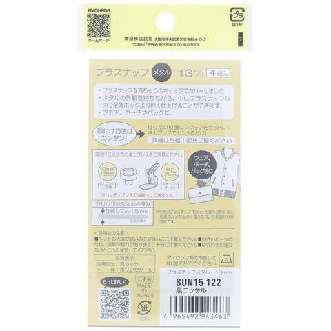 清原 プラスナップメタル 13mm 黒ニッケル [SUN15122] SUN15-122