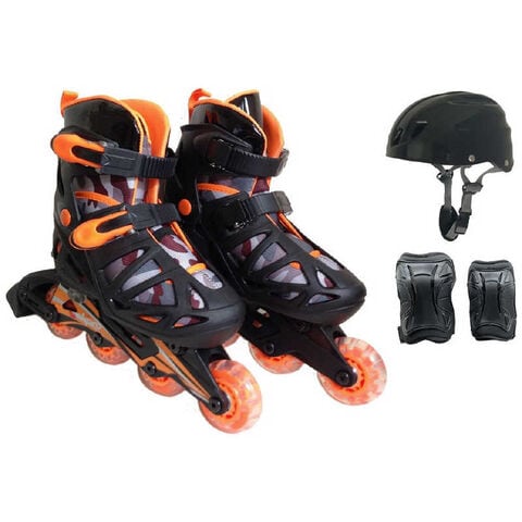インラインスケート本体とヘルメット・プロテクターのコンボセット。