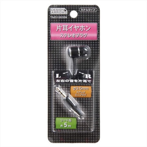 ヤザワ イヤホン カナル型 片耳・5m ブラック [φ3.5mm ミニプラグ] TMS1065BK