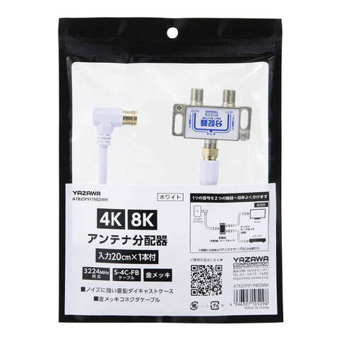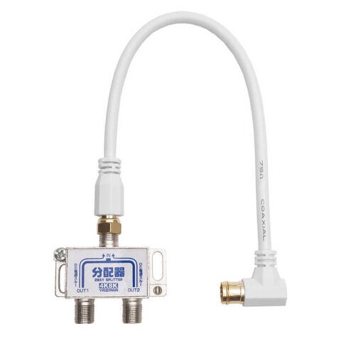 ヤザワ アンテナ分配器IN20cm×1本ケーブル付白 新4K8K衛星放送対応 ATB2SP911N02WH