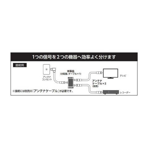 本製品を使用することにより、レコーダーなどの周辺機器や、別室にあるテレビなど、2台の機器へ分配した信号を送ることが可能になります。
