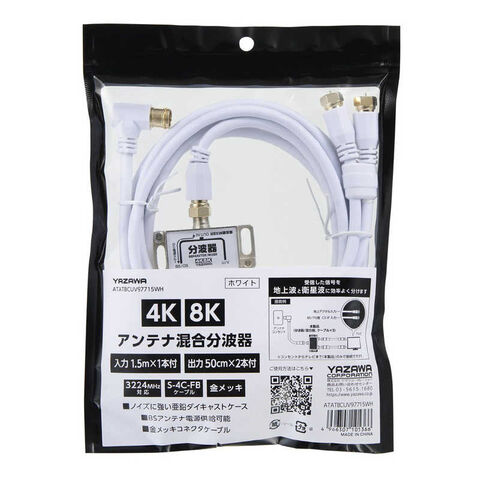 ヤザワ アンテナ混合分波器IN1 5M×1本OUT50CM×2本 白 新4K8K衛星放送対応 ATATBCUV97715WH