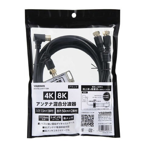 ヤザワ アンテナ混合分波器IN 1.5M×1本OUT50CM×2本 黒 新4K8K衛星放送対応 ATATBCUV97715BK