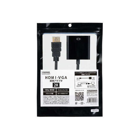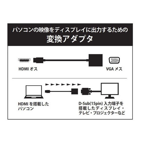 仕様2:[コネクタ形状]HDMI オスーVGA(D-Sub 15pin)メス[HDMI規格]HDMI Ver1.2[対応OS]Windows、Mac 各OS対応 ※Chromebook 非対応[本体サイズ]約W45mm×H45mm×D15mm(ケーブル、突起部除く)[ケーブル長]約150mm(コネクタ除く)[解像度]1920×1080に対応[ドライバ]不要[本体重量]約36g