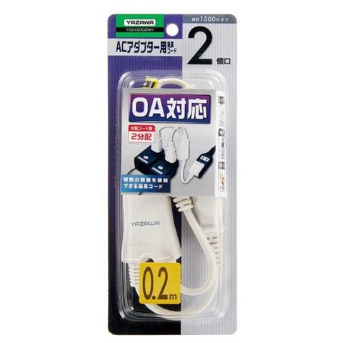 ヤザワ ACアダプター用2分配延長コード2個口  Y02V2002WH