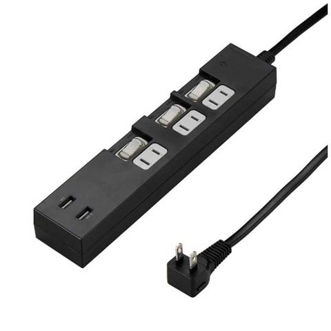 ヤザワ 個別スイッチ付3AC2USB3.4A 2m ブラック Y02KS532BK2U