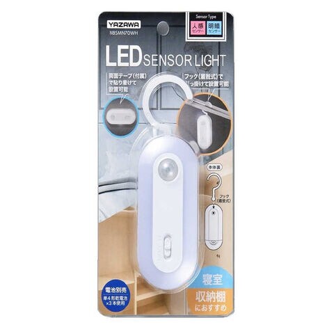 ヤザワ 乾電池式人感明暗ナイトライト 単4形アルカリ電池×3本(別売) 昼白色LED×10灯 明るさ約40lm [乾電池式] NBSMN70WH