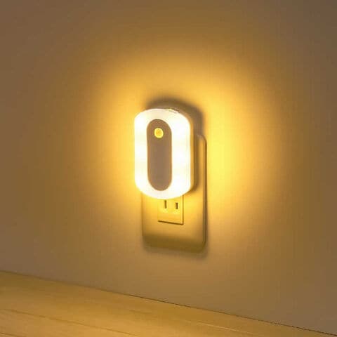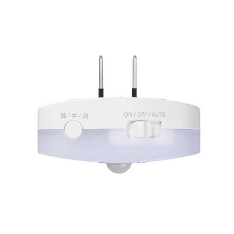 ヤザワ コンセント式人感明暗ナイトライト調光スイッチ丸角型 LED(電球色・2500K)自動点灯約30秒 [電球色 / コンセント式] NASWN80WH