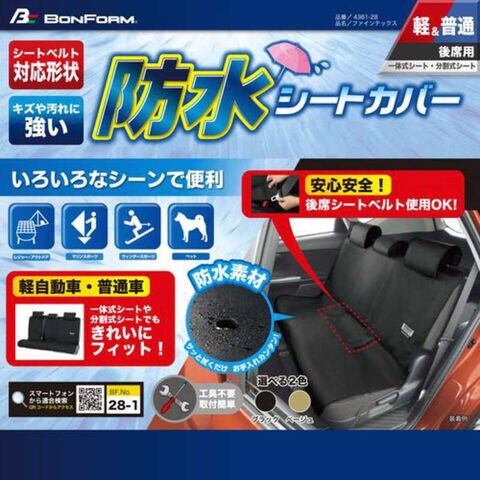 BONFORM 4361-28BK シートカバー ファインテックス 軽/普通車用 防水 取付簡単 丸洗いOK リア用(シートベルト対応) カラー:ブラック 436128BK