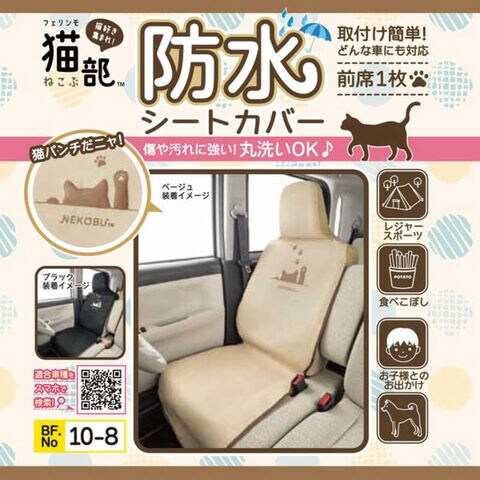 BONFORM シートカバー FN猫パンチ 取付簡単・防水 前席1枚入り カラー:ベージュ ベージュ 4066-10BE
