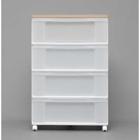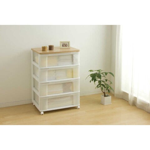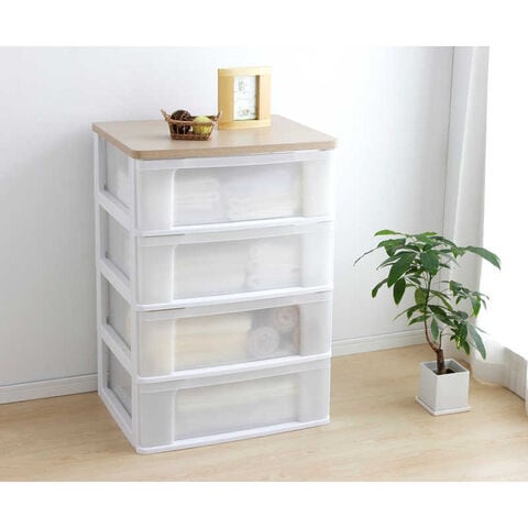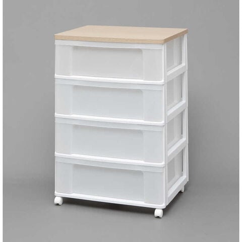 アイリスオーヤマ IRIS OHYAMA ウッドトップチェスト 4段 キャスター付き (ホワイト&フレンチオーク/約幅63.2×奥行50.7×高さ95.1cm)