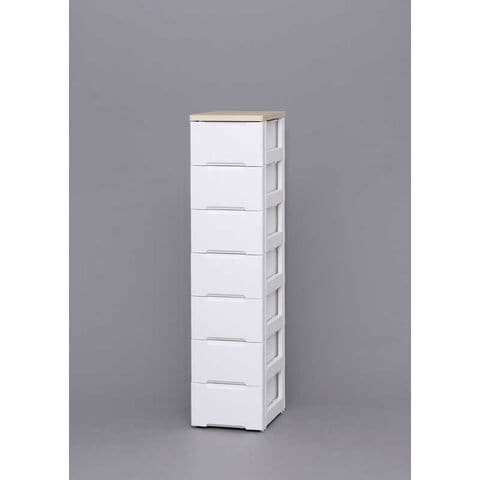 アイリスオーヤマ IRIS OHYAMA ウッドトップチェスト 7段 スリムタイプ (ホワイト&ナチュラル/約幅33×奥行41.5×高さ138cm)