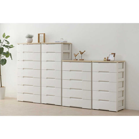 リビングや寝室の収納にピッタリの木天板付きのおしゃれなチェストです。木天板は汚れに強く、前板は塗装家具のように質感でデザイン性にも優れています。また、引き出しには開閉がスムーズなスライドレールを採用しています。