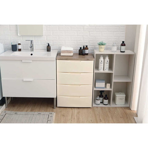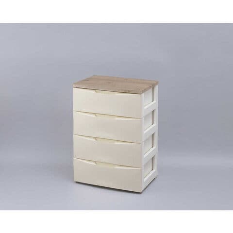 アイリスオーヤマ IRIS OHYAMA デザイン ウッドトップチェスト 4段 レギュラータイプ (アイボリー&アッシュブラウン/約幅56×奥行42×高さ81cm)
