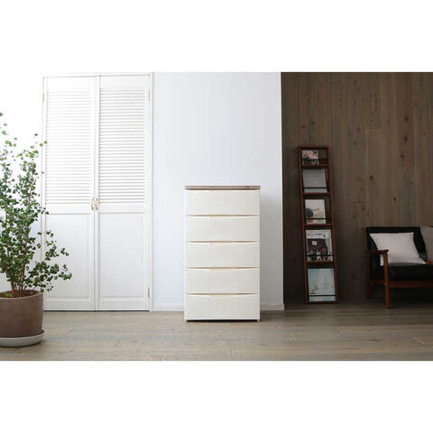 アイリスオーヤマ IRIS OHYAMA デザイン ウッドトップチェスト 5段 レギュラータイプ (アイボリー&アッシュブラウン/約幅56×奥行42×高さ100cm)