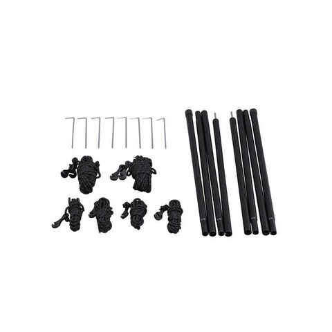 付属品:タープ本体1枚 ポール2本 センターロープ2本 サイドロープ4本 ペグ8本 キャリーバッグ1個