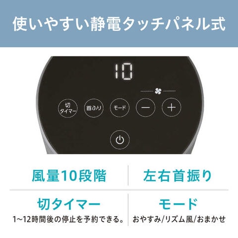 ●左右自動首振り機能付きで、風量が10段階調整でお好みの風量設定が可能です(風量の段階表示は見やすい7セグ表示)。