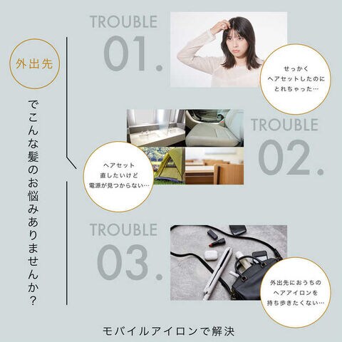 モバイルバッテリーとつなげば、いつでも、どこでも、スタイリングできます。