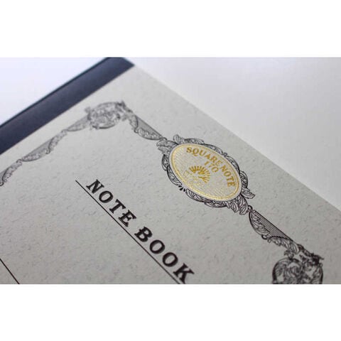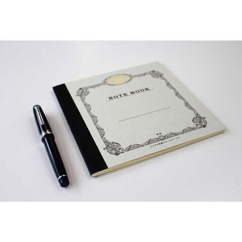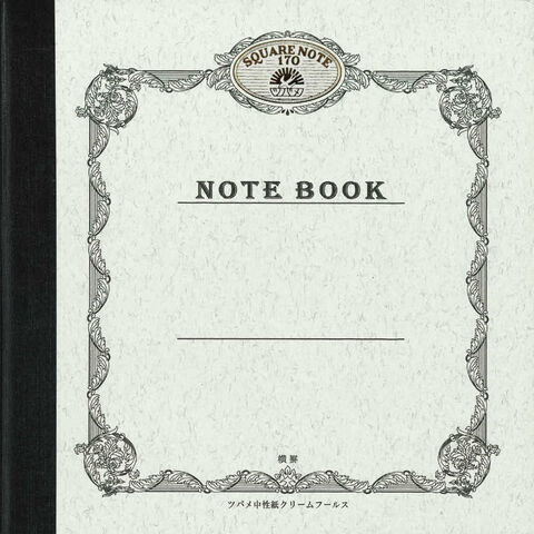 サイズ:170×170mm、本文紙:クリームフールス紙、製本 :糸綴じノート、横罫8mm×19行 40枚