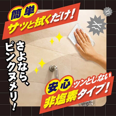 サッシやエアコン、お風呂の壁や天井、洗濯機のフチ汚れを拭き取りながら防カビ加工する洗浄シート。