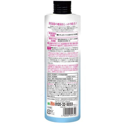 加湿器のタンクに水を張り、水2Lにキャップ1杯(約6mL)の割合で本品を入れます。