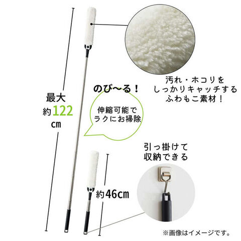 最大約122cmまで伸ばせる持ち手で、ラクにエアコン掃除ができます。