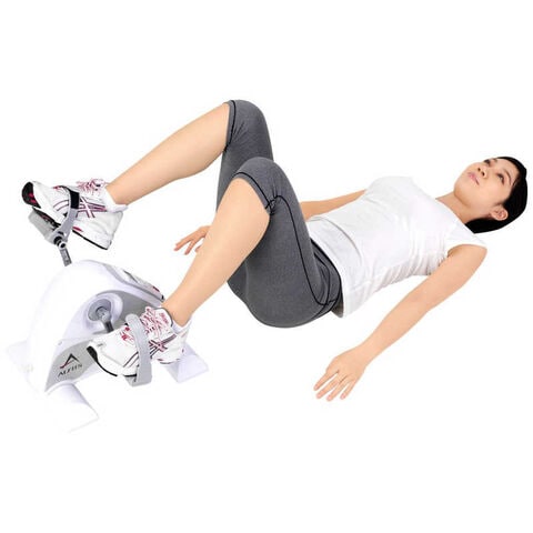 テーブルの上に本体を置いてペダルを手で回せば腕のシェイプアップも可能で、イスに腰掛けて運動する以外にも横になった状態でバイク運動が出来ます。