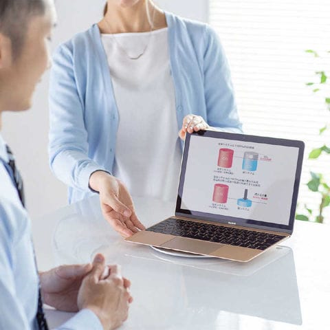 ●ノートパソコンやディスプレイを相手の見やすい位置に回転したり、共有して使用する時に便利です。