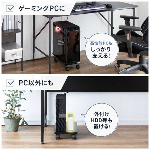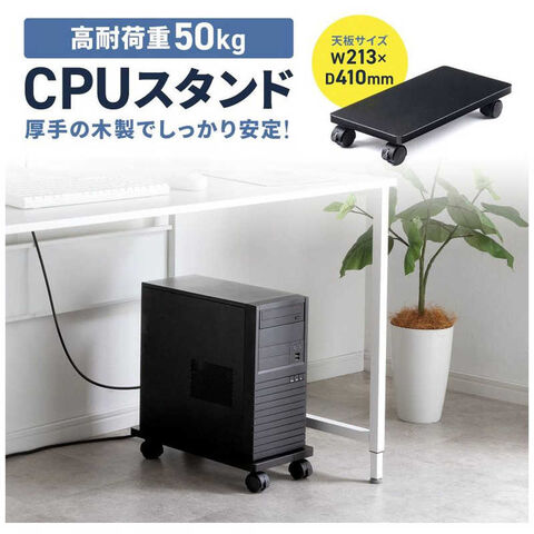●木製板にキャスターを取り付けたシンプルなデザインで、さまざまな環境に馴染むCPUスタンドです。