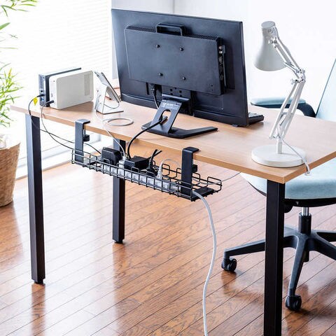 ●デスク背面に取り付けて綺麗にタップやケーブルの配線ができます。
