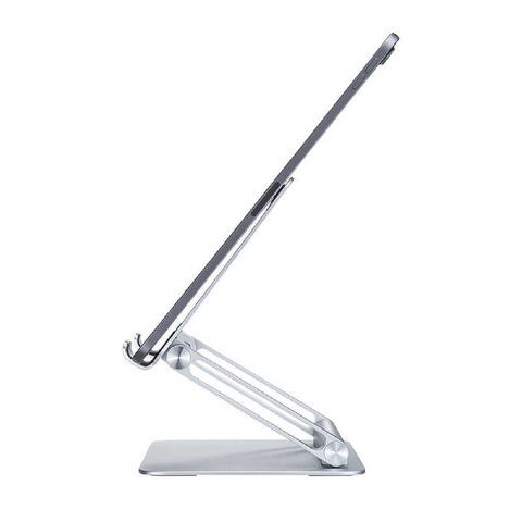 ●2つのヒンジを搭載し角度と高さの調整ができるアルミ製のタブレット用デスクトップスタンドです。