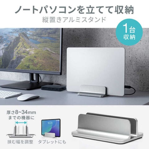 サンワサプライ ノートパソコン用アルミスタンド(縦置き・1台用) PDA-STN90S