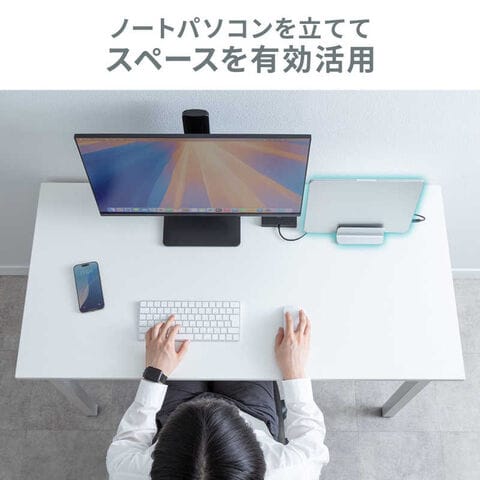 ●垂直にノートパソコンを設置することで、作業スペースやデスクスペースを節約できます。