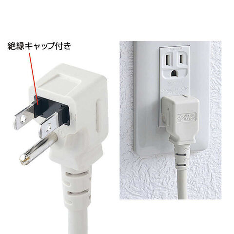 ●トラッキング火災予防に有効な絶縁キャップ付き3P(接地付き)プラグです。