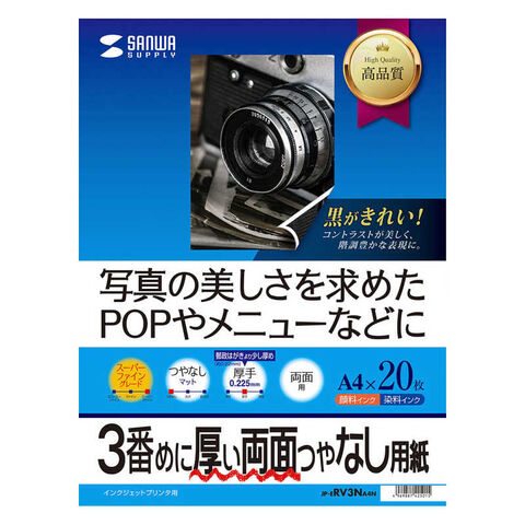 サンワサプライ インクジェット両面印刷紙・厚手(つやなしマット)0.22mm(A4・20シート) JP-ERV3NA4N