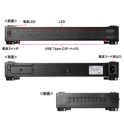 ●最大10台のiPad・タブレットやスマートフォン、モバイルバッテリーなどのType-C充電機器をまとめて充電できるUSB Type-Cを10ポート備えたUSB充電器です。