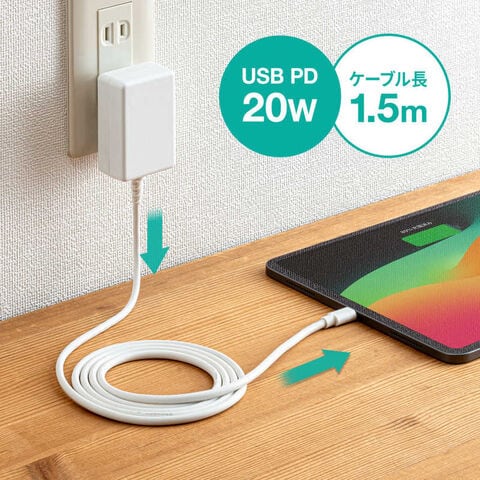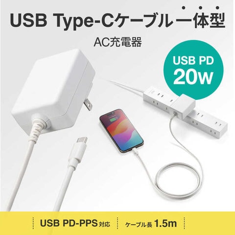 サンワサプライ USB PD対応AC充電器(PD20W・TypeCケーブル一体型) ACA-PD102W
