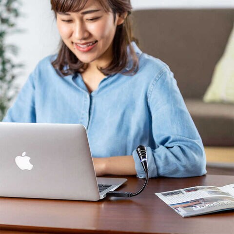 タッチ式ミュートボタン付きで音声チャットに最適なコンパクトUSBマイク。
