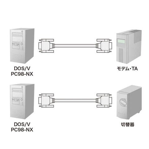 DOS/Vパソコンとモデム・TA(ターミナルアダプタ)等の周辺機器(DCE)、または切替器(SWW-21SP等)を接続するケーブル。(モデム・TA用・1m)