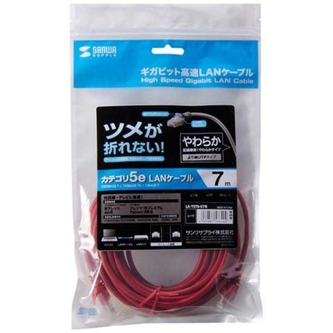 サンワサプライ カテゴリー5e対応 LANケーブル ツメが折れない(レッド・7.0m)簡易パッケージ LA-Y5TS-07R